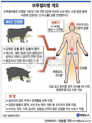브루셀라병은 소와 양 등의 가축에서 사람으로 전염되는 인수 공통 전염병입니다.
