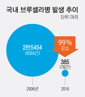 브루셀라병은 치사율은 2% 이하지만 방치할 경우 척추염이나 골수염 등을 일으키는 것으로 알려져 있습니다.