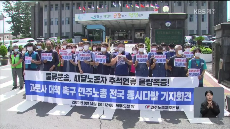 택배노동자 과로사 대책위원회는 17일 오전 서울 중구 전국민주노동조합총연맹(민주노총) 대회의실에서 기자회견을 열고 9월 21일부터 택배 분류작업을 전면 거부한다고 밝혔습니다.