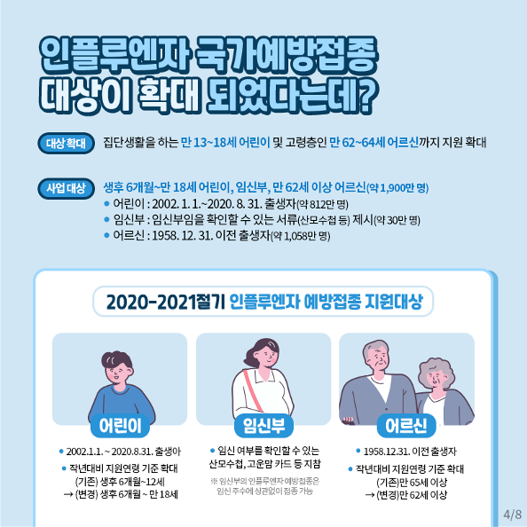 2020 독감 무료 예방 접종 대상자는 총 1900만 명으로 전체 인구의 37%에 해당하는 규모입니다.