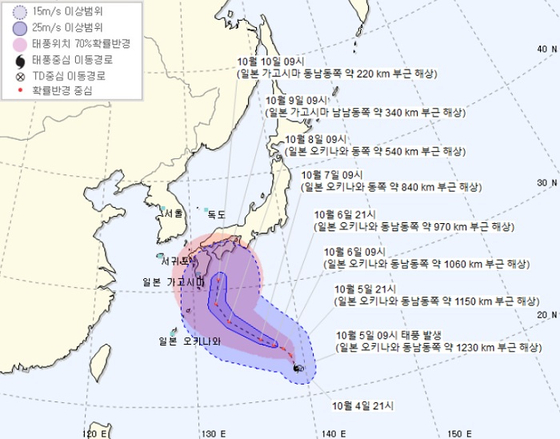 또한 8일 오전 9시께 일본 오키나와 동쪽 약 540km 부근 해상에 도달하여 강도 '강'의 태풍으로 커질 것으로도 내다보았습니다.