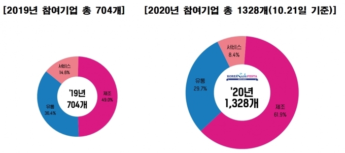 2020 코리아세일페스타 기간은 11월 1일부터 15일로, 전년 대비 2배쯤인 1328개 기업이 참가합니다.