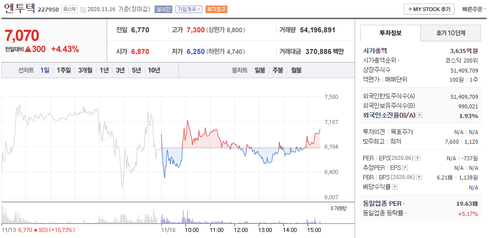 모더나 관련주 - 엔투텍