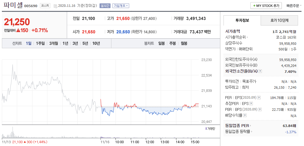 모더나 관련주 - 파미셀