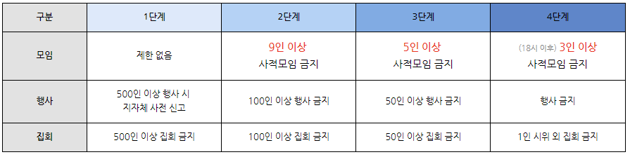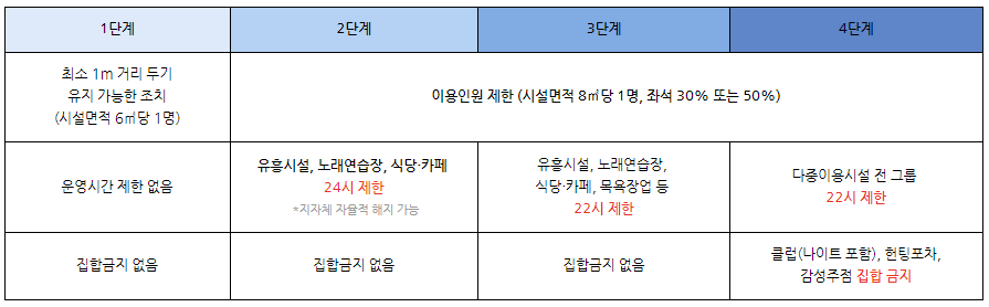 이후로는 코로나 유행 상황에 따라서 거리두기 4단계가 연장되거나, 단계가 하향 조정될 수 있습니다.