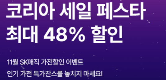 SK매직은 코리아세일페스타를 맞아 최대 48% 할인 행사를 진행중이며 T멤버십회원이면 가전 구매시 10% 추가할인 혜택을 제공한다고 합니다.