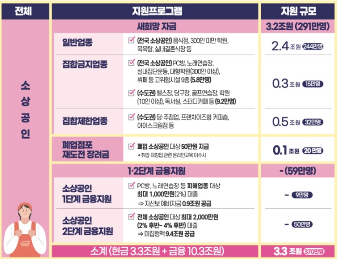 정부는 "소상공인 새희망자금 지원 대상은 291만 명으로, 전체 소상공인의 86%에 해당한다"라고 설명했습니다.